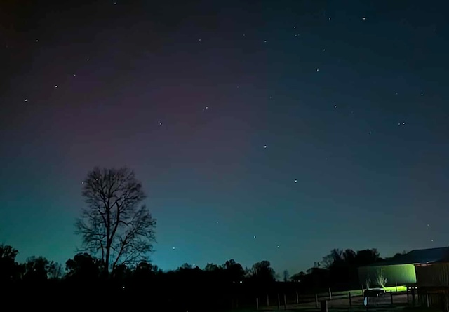 Northern Lights: More ways to view natural wonders By Veronica Arnold I missed the window on Tuesday night for the lights, so I made sure I followed the forecast and locked in on Wednesday night. I went out around 2200hrs, and you could see a faint hazy color that was different from normal coming from the north. We live south of town so north often has some light pollution from town but you could tell this was different. I tried to capture a few in the darkness and minimize lights on the farm, but hard to find a dark corner. A meteorologist was commenting on the fact that we seem to see more and people didn't years ago was, Cycle 24 was relatively quiet, and as the iPhones became popular, this enabled more people to see it with their camera lenses. So yes, we are seeing it more now than we used to, but there are explanations for that occurrence. The current cycle is active and many have access to phones with night cameras, so we are able to catch and share more easily. In addition, alerting people to this phenomenon using social media creates the awareness that we didn't have before. So we can enjoy this night show without worrying, this is just the benefit of living at this day and age. More ways to view natural wonders! Beautiful! Click here to share, print, or bookmark this article. 2025-11-15 10:07:16 | Comments