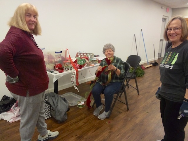 Homemakers enjoying making wreaths, left to right, are Donna Jones, Betty Knifley, and Sharon Harris.