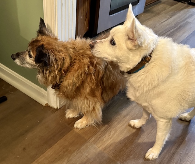 Moose and Churchill, the Waggener family dogs, waited patiently, hoping some of the foods on the holiday table might fall (or be secretly shared) with them. It is a special time of year, after all.