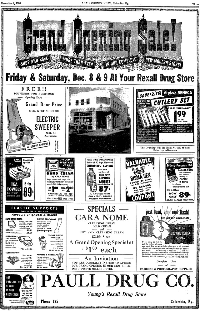 It was one of the biggests events of the year, when the late Garnett Young moved Paull Drug Company from what is today Reed Bros. Insurance to the building which had been most famous for housing Motor & Electric on the corner of Greensburg Street and the Public Square. It's notable that the building then is recognizable today.