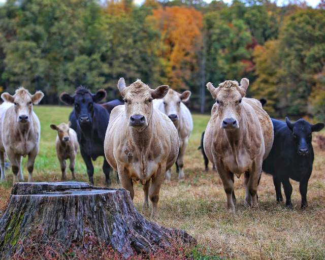 In this photo, the cattle had been across the field and ran over to where I was (I think they were trying to spook me) but I held my ground. The leaning to the left by the cows was apparently the final moment, captured in this photo, of their coming to a dead stop when they saw that their tactic didn't work. --ROBERT ELLIS. (c) Robert Ellis Woodworking