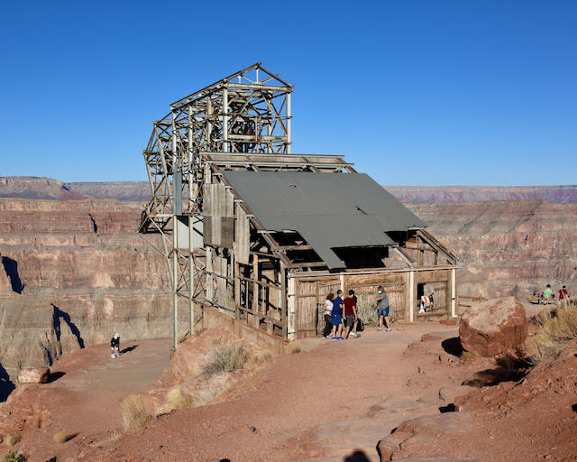 2021-05-07 - Grand Canyon West, AZ - Photo By Robert Ellis, Robert Ellis Woodworking. Robert writes, "My wife Tammy is shown here taking pics for other visitors. The structure in view is all that remains of unsuccessful attempts of harvesting Bat droppings (Guano) that was to be used as commercial fertilize. The link to the full story is here: https://www.mygrandcanyonpark.com/park/history/bat-cave-mine"