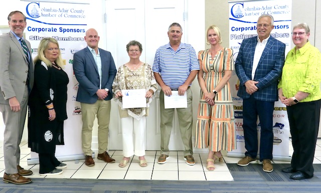 Agriculturist of the Year award went to Greg Burton (fourth from right). Others nominated in the agriculture category for the 2023 Columbia Adair County Chamber of Commerce award were Caitlin Helm, Donna Jones, Farmers Market, Dr. Shantila Rexroat, Brittany Smith and Vicky Pike.