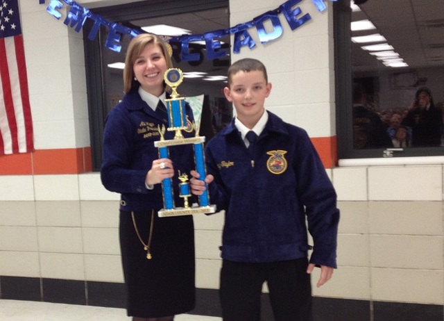 2013 FFA Greenhand Ceremony sees induction of 57 freshmen Over 150 parents and other family members present as 57 freshmen receive Greenhand Degree. State FFA President Ali Higgs recognizes Quiz Winner Allison Burrison and Creed Winner Coby Taylor Click on headline for complete story with photo(s) By Jessica Simpson Member, Adair County High School FFA Chapter On Tuesday. February 26, 2013 at 6:30pmCT the local Adair County FFA Chapter held their annual FFA Greenhand Ceremony in the Adair County High School Cafeteria. The event was a great success with 57 freshmen receiving their official Greenhand Degree. Over 150 parents and other family members and friends came to congratulate the Greenhands on their success with their freshman year of FFA. Article continues... click title or click here to read whole article. 2013-02-27 17:29:32 | Comments | Printable version