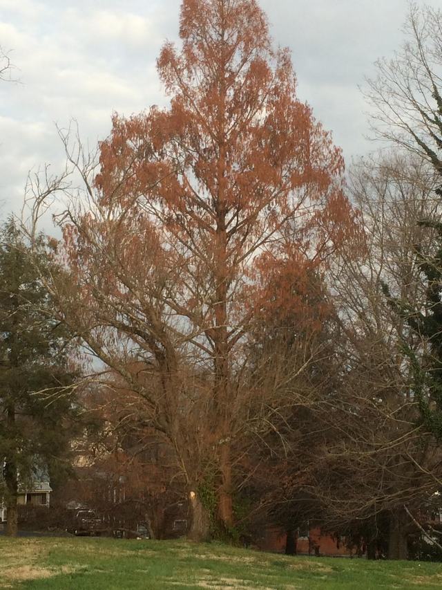 Confession of a Bald Cypress owner Steve Coomer writes: Bill, as I daily battle my Bald Cypress over ownership of the gutters and deck, my wife reminds me the neighbors can hear my voice and verse over the sound of my trusty Stihl blower! - Steve CoomerComments re photo 63809 Kentucky Color Brown Needles and Little Sermons 2015-12-12 08:09:55 | Comments | Printable version | See topic Letters and Reader Feedback
