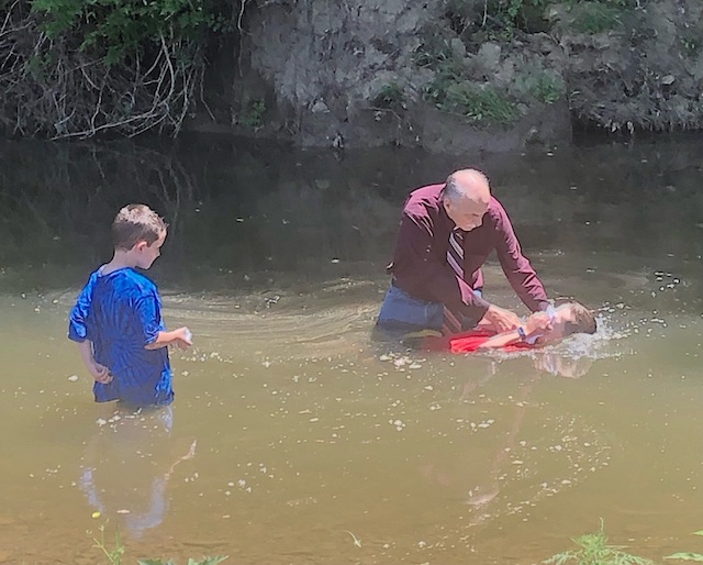 Sunday Baptism at Big Creek By Terry Partin Abundant blessings were flowing Sunday June 19, 2022 as Church Members, family and friends gathered on the banks of Big Creek to witness the baptism of young Luke Collins and Jaxton Stephens by Brother Mike Moon, Pastor of Jones Chapel Church. The baptism ceremony represents their dedication and decision to be followers of Christ. Luke is the son of Joe Brad and Gina Collins, and Jaxton is the son of Bradley and Shandi Stephens. Jones Chapel Church is located at 2267 Jones Chapel Road, Columbia, KY. 2022-06-19 21:46:11 | Comments | Printable version | See topic Church News
