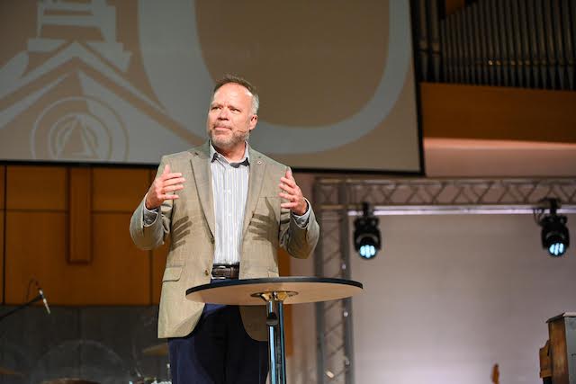 Dr. O'Neal brings message of hope at CU's Ransdell Chapel By Simon Baker, student news writer, Office of University Communications Dr. Mike O'Neal, associate professor of theology, Old Testament and Hebrew at Campbellsville University, emphasized the lasting and enduring hope that can only be found in Christ recently in Ransdell Chapel. O'Neal read from Psalm 33:1-15, about "a legacy of hope." O'Neal emphasized to students how the "surest hope a person can have is hope in the Lord." He said, "As long as you and I have hope, we can make it. No matter the hardship." Article continues... click title or click here to read whole article. 2022-09-24 09:18:29 | Comments | Printable version