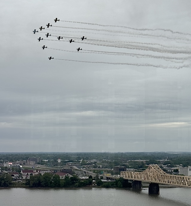 Smoke On Aviation kept families and friends gathered on the banks along the Ohio River, in vehicles, hotels and on television, mesmerized leading up to the fireworks show kicking off the start of the 2026 Kentucky Derby season. This is the view from the Swizzle on the 25th floor of the Galt House courtesy of Mr "P" Express. Even though the weather wasn't perfect, it was great to be there after last year's flooding kept the events from happening.