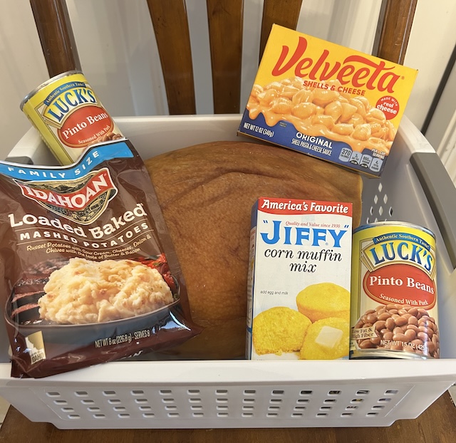 Aaliyah Booker's Country Ham Basket, above, includes baked potatoes, pinto beans, macaroni and cheese, and corn muffin mix. Comments | Permalink Leftover pumpkins