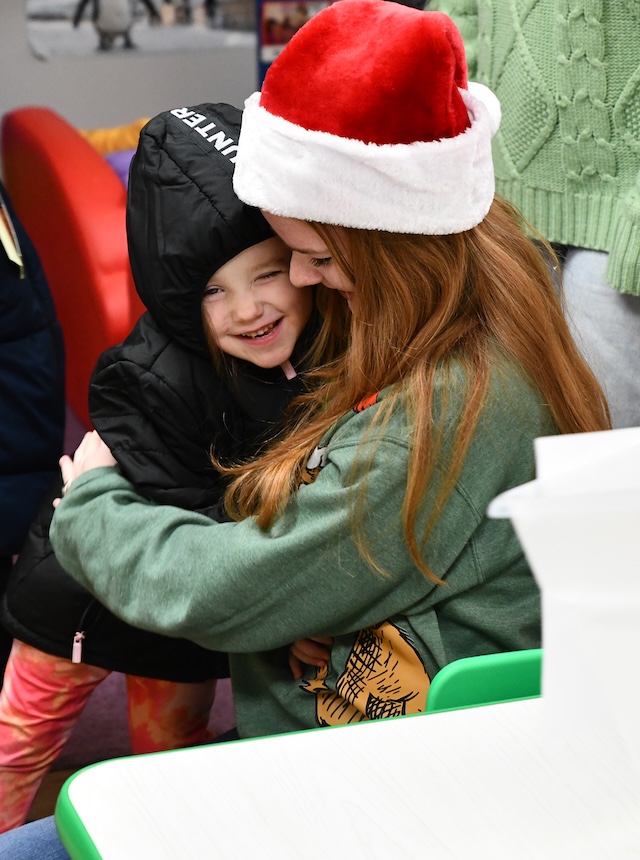 Lindsey Wilson University student Emmalee Miller '27 of Louisville, Kentucky, receives a hug from an Adair County Head Start student after she helped him try on his new winter coat. The LWU Bonner Scholar Program's "Coats for Kids" donated 48 winter coats to Adair County Head Start on Wednesday, December 10, 2025. Comments | Permalink Jay Woodall and Emmalee Miller help students with coats