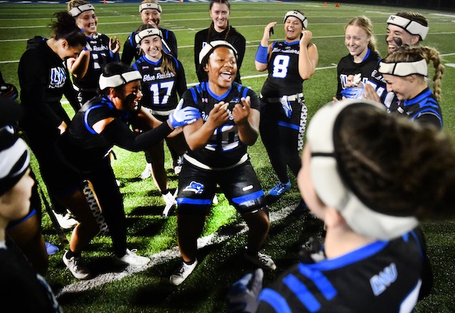 Lindsey Wilson University junior Ashten Dickerson of Pace, Florida, leads the Blue Raiders' postgame celebration following their 40-13 win over Campbellsville (Kentucky) University on Friday, March 13, 2026, at Parnell Family Stadium. It was the first women's flag football home game in LWU history. The Blue Raiders, who are now 4-1 in their inaugural season, play their next home game on April 1, 2026. Comments | Permalink Trout Lily imminent