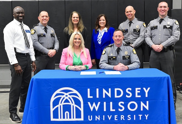 Representatives from Kentucky State Police and Lindsey Wilson University gathered on Wednesday, March 11, 2026, at the Kentucky State Police Academy in Frankfort to announce the Lindsey Wilson Kentucky State Police Scholarship.