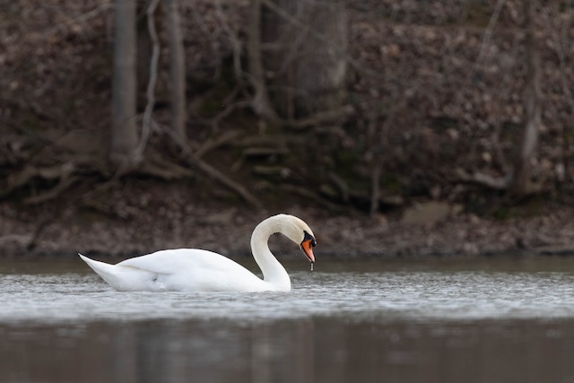 A lone mute swan stopped by Lake Shelby on Tuesday, March 10, 2026. All About Birds says, "The Mute Swan is reported to mate for life, ... but swans will remate if their partner dies. If a male loses his mate and pairs with a young female, she joins him on his territory. If he mates with an older female, they go to hers. If a female loses her mate, she remates quickly and usually chooses a younger male." Comments | Permalink Older Photos