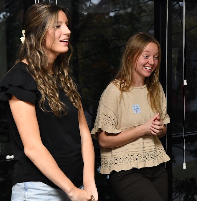 Lindsey Wilson University students Emma Snyder '26, a human services and counseling major from Glasgow, Kentucky, left, and Whitley Gibson '27, a human services and counseling and media studies double major from Edmonton, Kentucky, discuss their experiences at Harlaxton College during a presentation about the study-abroad experience on Wednesday, October 29, 2025, in the J.L. Turner Leadership Center. Comments | Permalink Older Photos