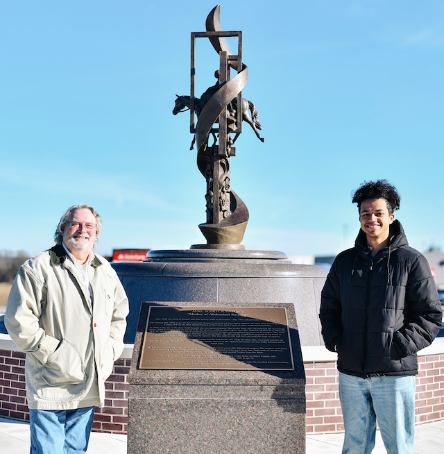Lindsey Wilson University art professor Tim Smith, left, and art major Tezon Mitchell '27 of Greensburg, Kentucky, stand Monday, December 15, 2025, next to the sculpture of Jane Todd Crawford in front of Jane Todd Crawford Hospital in Greensburg. The sculpture was unveiled December 13, 2025. Smith created the sculpture, and Mitchell was one of the LWU students who assisted him on the project. Comments | Permalink Adair Fiscal Court returns to two monthly meetings