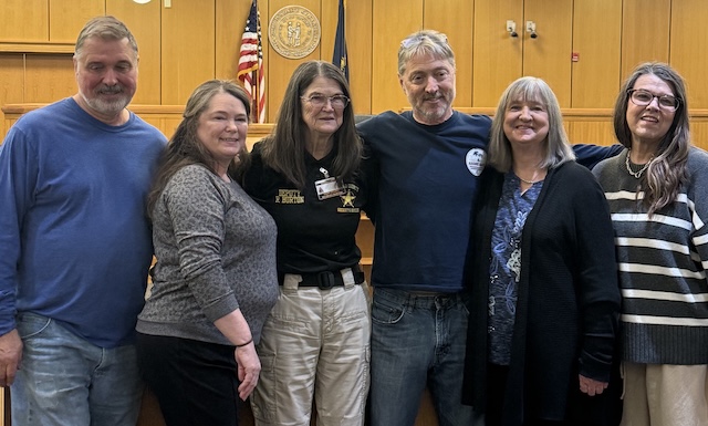 Tina Thomas, fourth from left, shared this picture of grandchildren who made it to the special event honoring Raydean Burton at her 15-year retirement from the Adair County Sheriff's Office. From left are: Madison Clark, Trinity Burton, Gavin Bloyd, Tina Thomas, Autumn Dietzel, Raydean Burton, Cheryl Goodin, Novalee Goodin, Colton Clark, Tisha Cook, Lainey Estes and Haley Estes. Comments | Permalink Basketball: Lady Indians win in Double OT