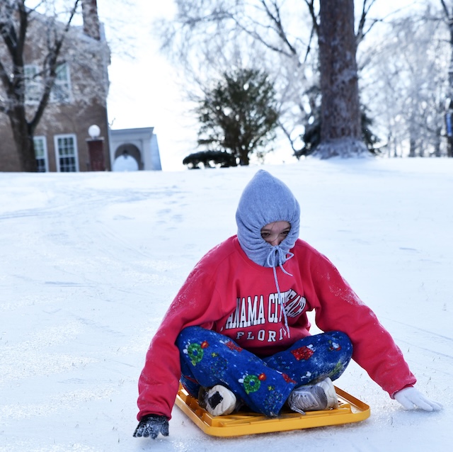 Lindsey Wilson University students Skyler Randolph '29 of Fort Myers, Florida, left, and Breanna Turnbaugh '29 of Louisville, Kentucky, sled down the hill next to the John B. Begley Chapel on Monday, January 26, 2026. The weekend's winter storm closed Lindsey Wilson offices and canceled classes on Monday. Comments | Permalink Older Photos