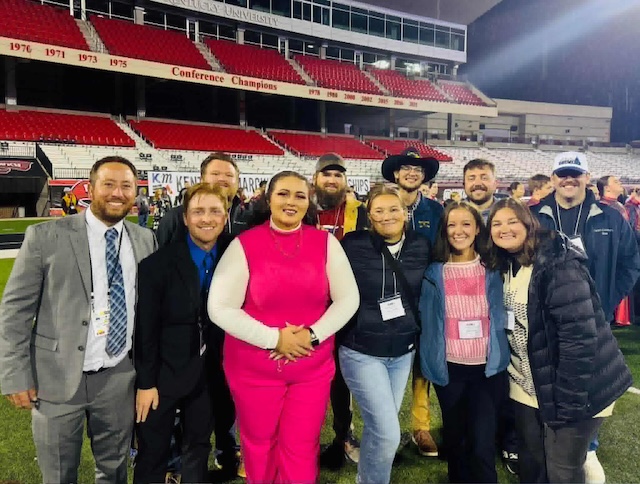 2025-10-26 - Bowling Green, KY - Photo from Amber Hobaugh Pictured at this past Saturday's K.M.E.A State Finals event at L.T Houchens Stadium at Western Kentucky University are: (front row l-r) Director Jonathon Holmes, Assistant Director Halen Pharis, Instructors: Bonnie Cravens, Ashley Tungate, Sadie Kemp, Lauren Cockerham, (back row l-r) Cody Peavler, Danny Taylor, Justin Butler, Caleb Irvin and Grant Cockerham. Not pictured staff members/contributors to the 2025 show Crystalize include: Jim Idol, Tanner Stonecypher, Andrew McGuffey, Nate Nash, Caden Holmes, Ben Lee, Jeffrey Thompson, Dan Schmitt, Nathan Wilkerson and Kim Alsabrook.