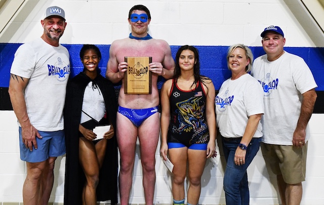 Lindsey Wilson University student Lorenz Hof '29 of Stadtallendorf, Germany, launches into his winning belly flop on Thursday, October 23, 2025, in the Doris and Bob Holloway Health & Wellness Center natatorium. Comments | Permalink Lorenz Hof is 2025 Belly Flop Champion