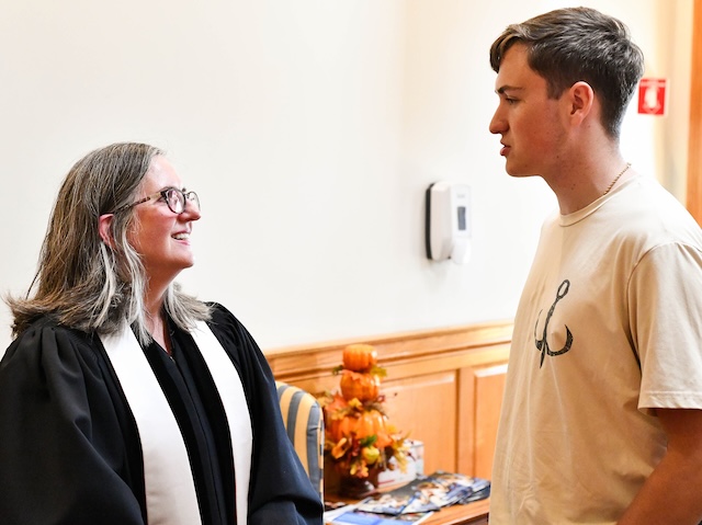 The Rev. Tami Coleman talks to Lindsey Wilson University student Braxton Crook '28, a Christian ministries major from Lebanon, TN, following the Church & University Celebration on Wednesday, October 22, 2025, in V.P. Henry Auditorium. Comments | Permalink Older Photos