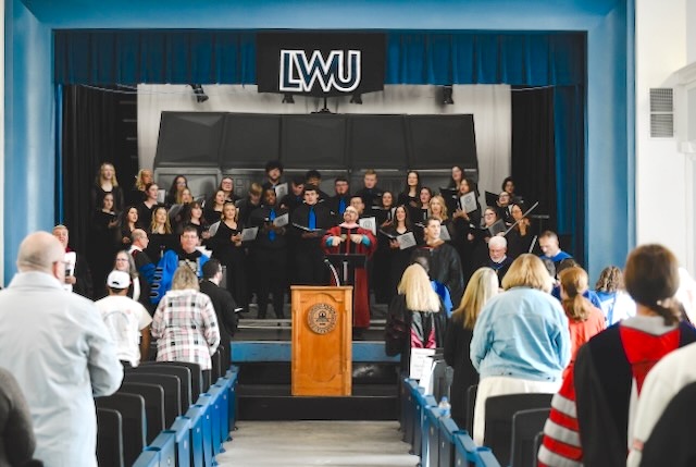 The Lindsey Wilson University community gathers on Wednesday, October 22, 2025, in V.P. Henry Auditorium for the Church & University Celebration. Comments | Permalink Braxton Crook talks with Rev. Coleman