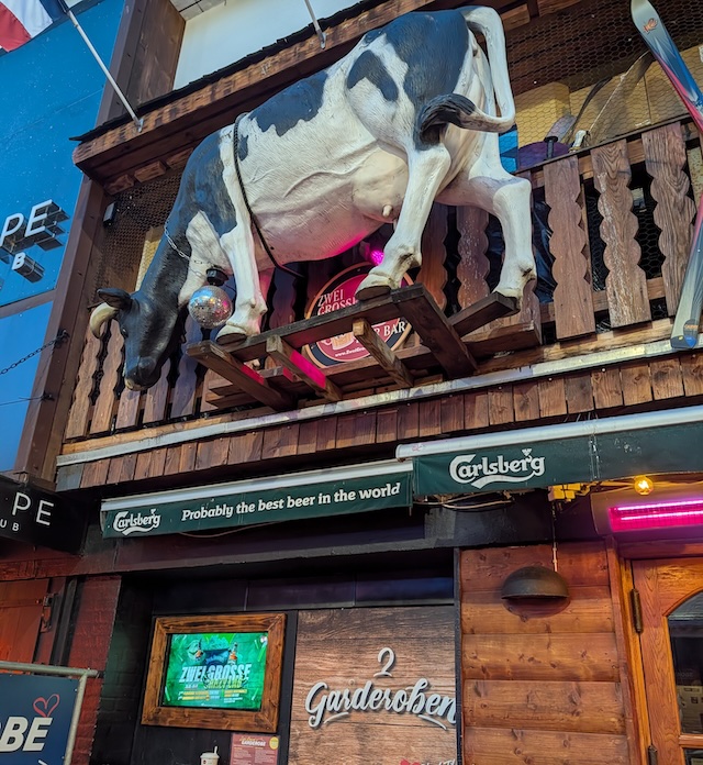 Veronica writes, "IA picture of one pub which apparently likes Holstein cows. A disco cow! This traveler left that scene for a comfy bed and good slippers!" Comments | Permalink Older Photos