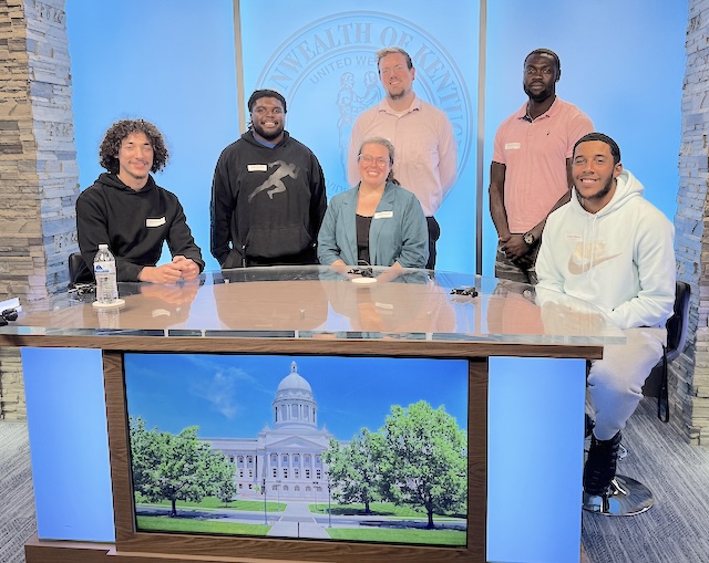 Lindsey Wilson University students in the "Political Communication and Public Affairs" class gather in the state Senate studio on a recent field trip to Frankfort, Kentucky.