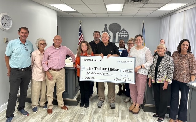 Christan Bell Montgomery Gimbel has donated $5,000.00 to the City of Columbia for preservation of the historic Trabue Russell House. Members of the Trabue Russell House Committee presented a check to the City at the October meeting of the City Council.