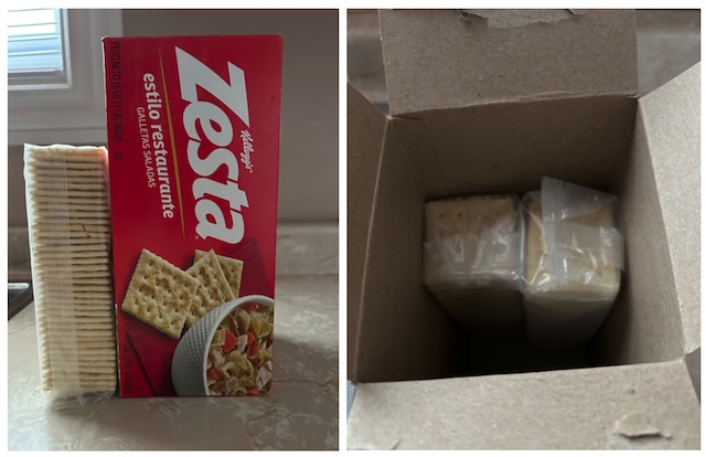 Tommy writes, "When you open a new box of crackers you will see a lot of empty space at the top. This is how consumers are getting ripped off. It's two fold: they raise their price per box and then they give you less product. It's very misleading."