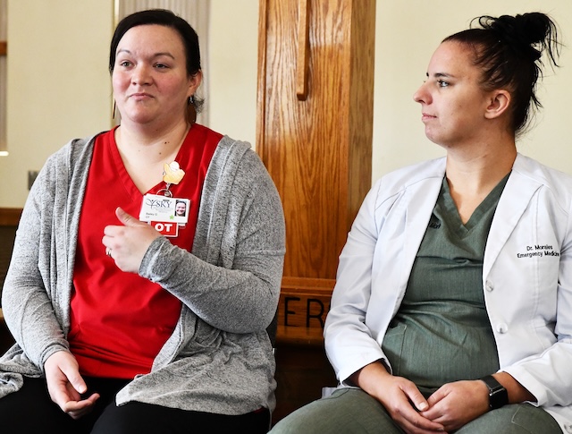 Dr. Bailey Gifford '15, left, discusses the professional road that led to becoming an occupational therapist during a Lindsey Wilson University "Career Week" panel in the university's Norma and Glen Hodge Center for Discipleship. At right is Dr. Hannah Morales '15. Comments | Permalink Older Photos