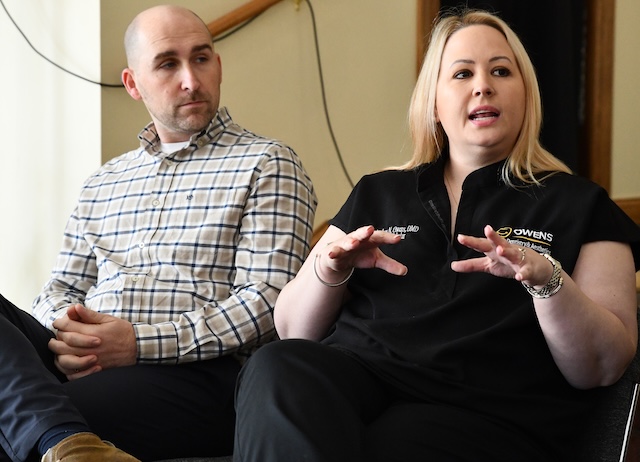 Land Judging team members Ethan Wooten, Isabella Harvey, and Katie Kean try to stay warm while their advisor, Gabby Barnes, discusses erosion, drainage, and soil depth limitations. Comments | Permalink Dr. Owens discusses working in Dentistry