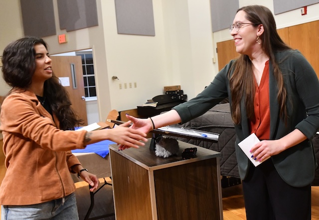 Lindsey Wilson University psychology professor Jordan Greenburg, right, welcomes LWU student Amanda Parreiras Goncalves '26 of Brazil into the university's chapter of Psi Chi, the international psychology honor society. Comments | Permalink Older Photos
