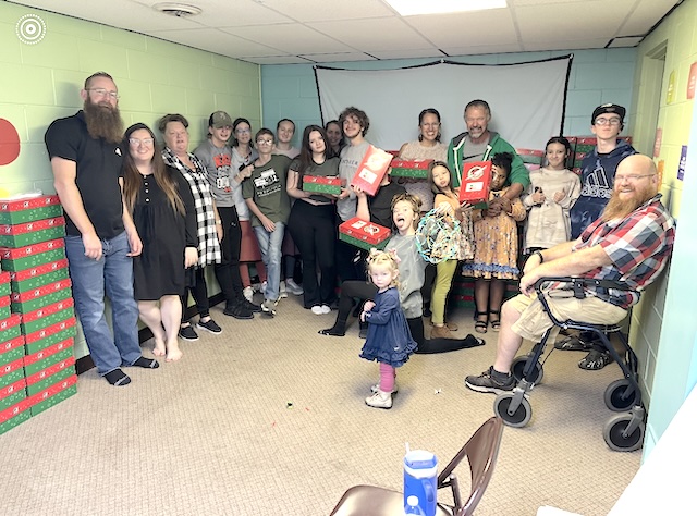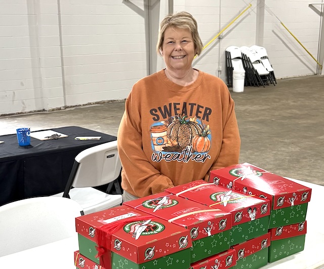 2025-11-24 - Columbia, KY - Photo courtesy Mark Fudge Nancy Cundiff dropped off these beautiful shoeboxes on the final day of drop offs, Monday, November 24, 2025. These boxes were packed and prepared by the Cane Valley Christian Church. Comments | Permalink OCC 2025: Columbia First Church of the Nazarene