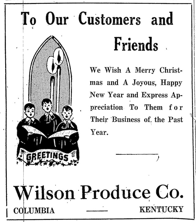 Above, "Merry Christmas and A Joyous, Happy New Year" from Wilson Produce Co. Comments | Permalink Vintage Christmas Advertisements No. 1