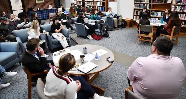 2025-11-26 - Columbia, KY - Photo courtesy Lindsey Wilson University. Lindsey Wilson University students, faculty and staff gather Tuesday, November 25, 2025, in the Thomas D. Clark Reading Room of the Holloway Building for a session of the 2025 fall symposium of the R.V. Bennett Honors Program.