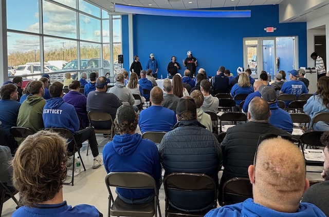 2025-11-26 - Columbia, KY - Photo by Linda Waggener. Kentucky Sports Radio is broadcasting live from 8am-11amCT on Wednesday, November 26, 2025, at the new location of Don Franklin Ford, 3211 Adair Veterans Memorial Hwy, Columbia, KY. From left to right are Shannon "The Dude" Grigsby, Drew Franklin, Ryan Lemmond, and Matt Jones.