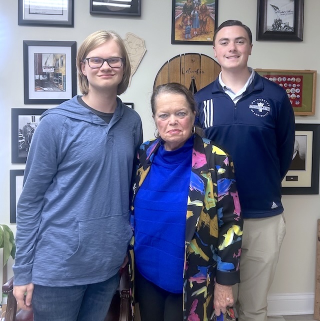 2026-01-08 - Columbia, KY - Photo courtesy City of Columbia. Adair County native Ethan Coomer (left) stopped by City Hall to meet with Mayor Pam Hoots and Trey Stephens (right) during a visit to town. Coomer has been studying History at the University of Kentucky since 2023.