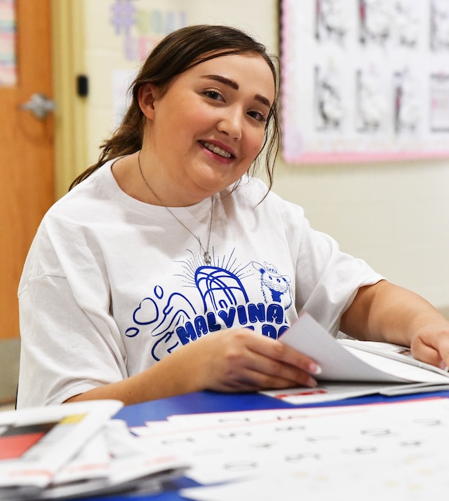 2025-09-25 - Columbia, KY - Photo courtesy Lindsey Wilson University. Lindsey Wilson University education major Elizabeth Marcum '26 of Columbia works on a project at Adair County Primary Center during the university's annual Malvina Farkle Day on Wednesday, September 24, 2025.