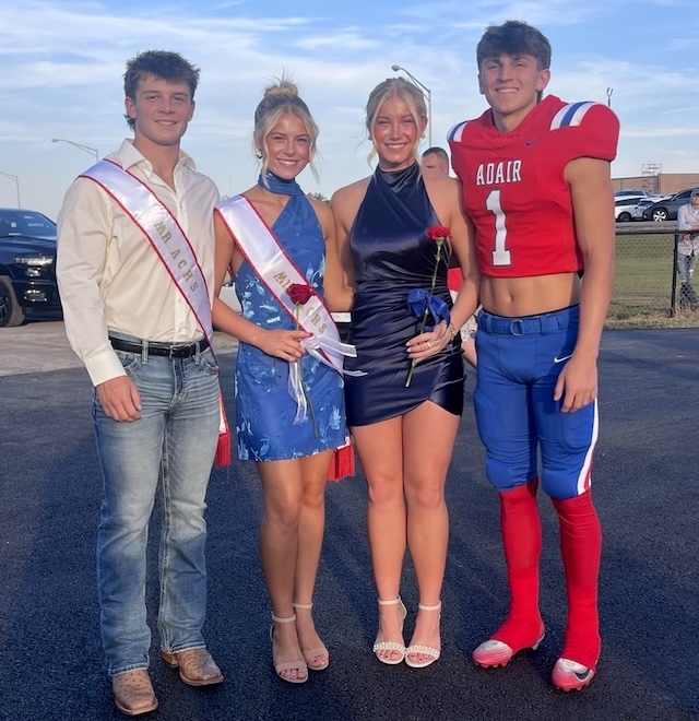 2025-09-24 - Columbia, KY - Photo by Heather Spoon. Adair County High School representatives at Homecoming 2025 are, from left: Bryce Russell, Anslie Spoon, Addison Spoon, and Dawson Gilbert. Bryce and Anslie are Mr. And Ms. ACHS (they have been Mr and Ms freshman, sophomore, junior and now representing the entire school). Addison was representing Girls Volleyball and Dawson was her escort. If the girls look like twins it's because they are!