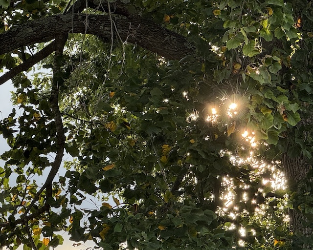 2025-09-17 - Columbia, KY - Photo by Linda Waggener, ColumbiaMagazine.com. We continue to have sunny days with beautiful sunsets. This one was peeking through the leaves of a Tulip Poplar tree on Glenmary Drive.