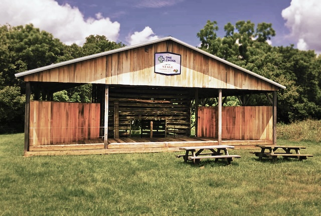 2025-09-18 - Campbellsville, KY - Photo by Lyn Stanton. The new outdoor stage (above) at Homeplace on Green River, made possible with support from One Cross Community Health, is ready for its very first dedicated musical event.