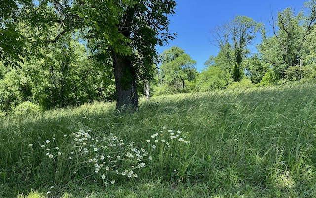 2025-07-27 - Metcalfe County, KY - Photo by Linda Waggener, ColumbiaMagazine.com. Daisies say summer in Kentucky to me. These were waving from the hillside above the restaurant in Sulphur Well where the aroma of frying country ham is always present along with that of the white sulphur water from the artesian well across the road.