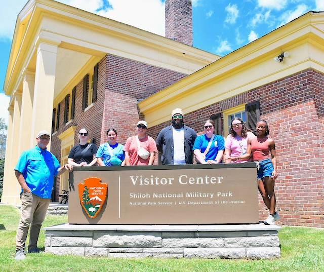 2025-07-27 - Shiloh, TN - Photo courtesy Lindsey Wilson University. Members of the cast of the Lindsey Wilson University TheatreFest! production of "Shiloh Rules" visit the Shiloh National Military Park on Saturday, July 26, 2025.