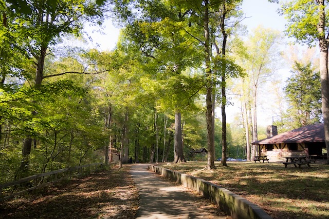 2025-10-17 - Jefferson County, IN - Photo by Pen. Clifty Shelter near the North Entrance to Clifty Falls State Park, is nestled among tall trees, and is a good starting point for some of the shortest hikes to Clifty Falls and Little Clifty Falls.