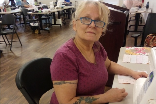 Bridgett Powell working on a quilt square at one of the quilting lesson sessions from the from the Joyful Heart Quilt Guild.