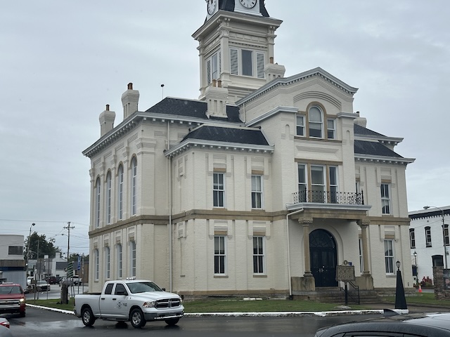 2025-10-06 - Columbia, KY - Photo from Trey Stephens. Trey writes, "This morning, City of Columbia Parks and Recreation staff, assisted by inmates from the Adair County Regional Jail Class D facility, are painting the curbing around the historic Adair County Courthouse in Downtown Columbia. The City would like to thank Mark Jones of Class D for assisting in coordination and the inmates for all their hard work."