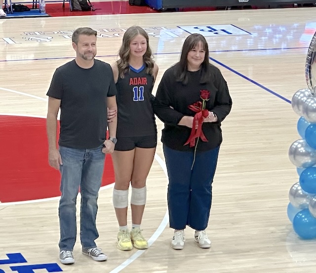 2025-10-17 - Columbia, KY - Photo by Trey Stephens. Senior Kinzlee Akin, the daughter of Stacy and Heather Akin, was honored at the ACHS Indians Varsity Volleyball home game against the Metcalfe Co. Hornets on Thursday, October 16, 2025.