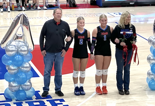 2025-10-17 - Columbia, KY - Photo by Trey Stephens. Seniors Anslie Spoon and Addison Spoon, the daughters of Kevin and Heather Spoon, were honored at the ACHS Indians Varsity Volleyball home game against the Metcalfe Co. Hornets on Thursday, October 16, 2025.