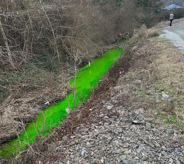 A concerned Citizen sent this photo to Columbia Magazine just after 3pmCT with a note that said, "concerned ccitizen of Columbia here, have you heard anything as to why the Town Creek is neon green?"