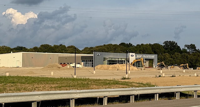 2025-08-19 - Photo by Linda Waggener, ColumbiaMagazine.com. Progress continues on the new Franklin Ford location on the Veterans Memorial Bypass in Columbia. The parking lot has been leveled and lighting is being installed around the building.